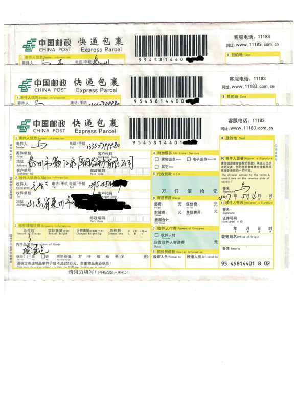 尊敬的山东客户,首先感谢您对我公司的信任, 选择跟我公司合作,你单位订购的3箱1200只胃镜检查包已经由邮政快 递发出,