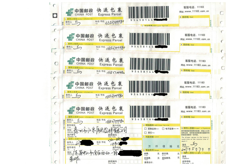 由邮政快递 发出,请注意查收。邮政快递会送 货上 门,请耐心等候。增值税专用发票会随后寄出,请放心,期 待下次合作。