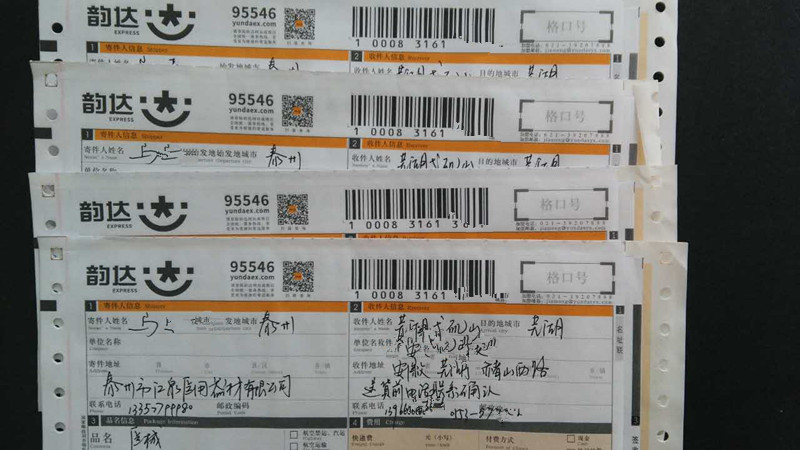 由韵达快递发出,请注意查收。韵达快递送 货上 门,请耐心等候。增值税专用发票按照你的意思随后单独寄出,请注意