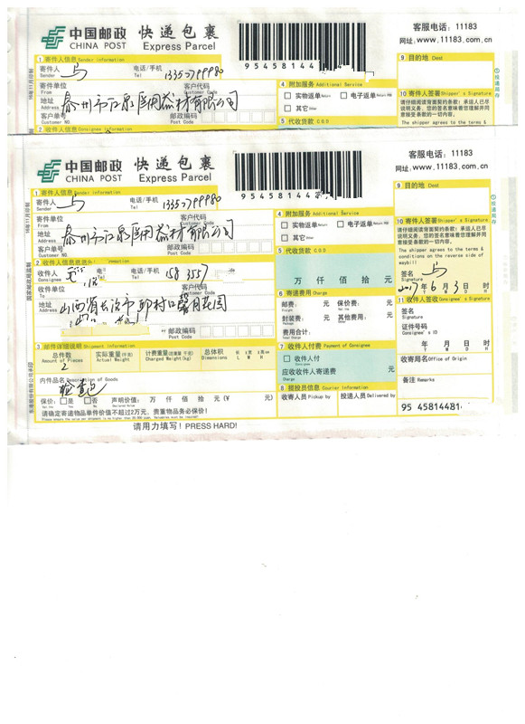 西省长治市客户,首先感谢您选择与我公司合作,你订购的两箱800只胃镜检查包,已经顺利发出,请您注意查