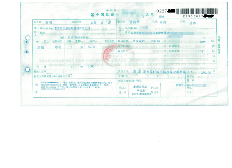 检查包已经由中铁快运递发出,请注意查收。中铁快运会送货上门,请耐心等候。增值税专用发票发票按照你的